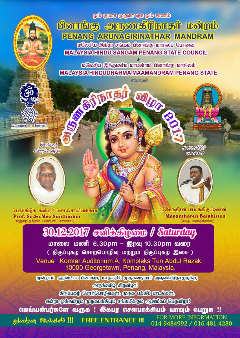 Penang Arunagirinathar Mandram will be hosting the 3rd year Arunagirinathar Vizha along with Malaysia Hindu […]